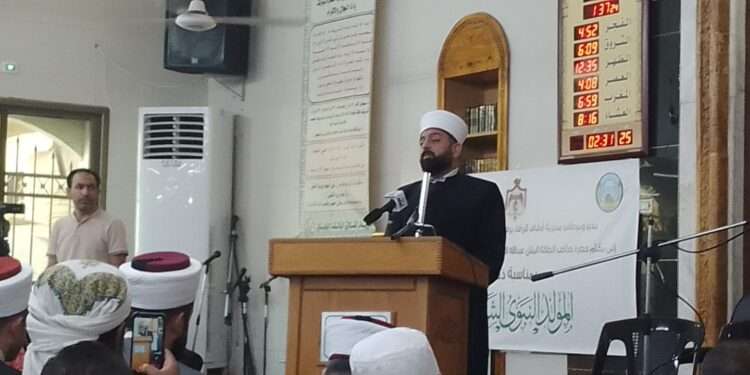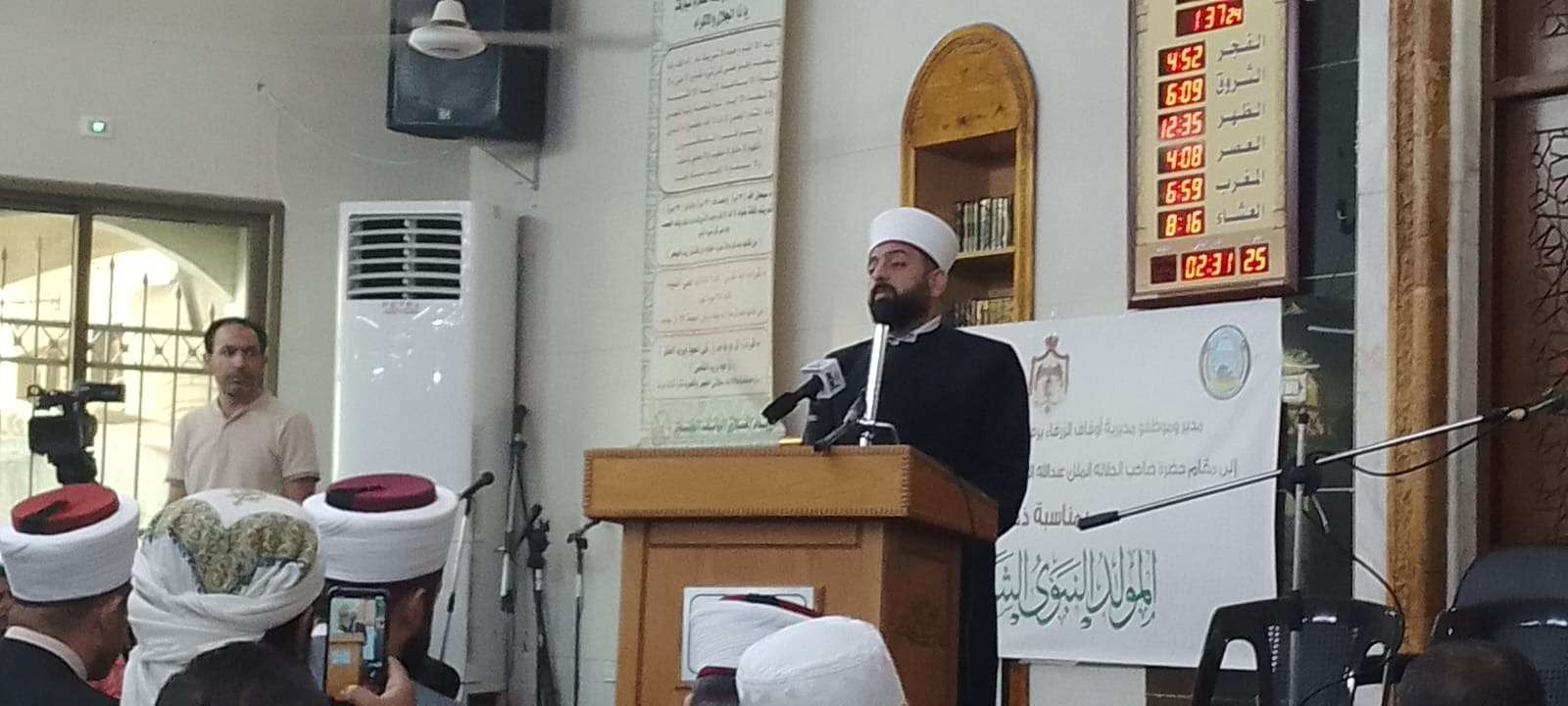 اقامت مديرية أوقاف محافظة الزرقاء، الأحد، احتفالاً بمناسبة ذكرى المولد النبوي الشريف، تحت رعاية مفتي عام المملكة، الدكتور احمد الحسنات، وبحضور مدير أوقاف المحافظة، الدكتور أحمد سلامة الحراحشة، ورئيس لجنة بلدية الزرقاء المهندس خالد الخشمان، ومندوب محافظ الزرقاء، وعدد كبير من أئمة المساجد والوعاظ والمصلين، في مسجد عمر بن الخطاب الكبير، وسط مدينة الزرقاء.