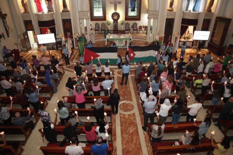 صدى الشعب – عشية مرور سنة على بدء الحرب على غزة، نظمت كنيسة قلب يسوع الأقدس في تلاع العلي، بالتعاون مع المركز الكاثوليكي للدراسات والإعلام، مساء أمس الأحد، وقفة صلاة وترانيم وإضاءة الشموع من أجل وقف نار الحرب وإيقاد شعلة السلام في فلسطين ولبنان، ومن أجل ديمومة الاستقرار في الأردن العزيز.
