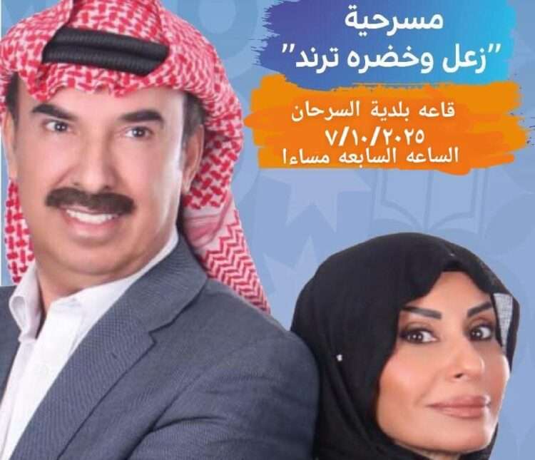 تنظم مديرية ثقافة المفرق بالتعاون مع منتدى السرحان للتنمية الثقافية وبلدية السرحان، العرض المسرحي الكوميدي المميز “زعل وخضرة ترند”، وذلك عند الساعة السابعة من مساء يوم الثلاثاء الموافق 7 تشرين الأول 2025 على مسرح قصر بلدية السرحان للمناسبات.