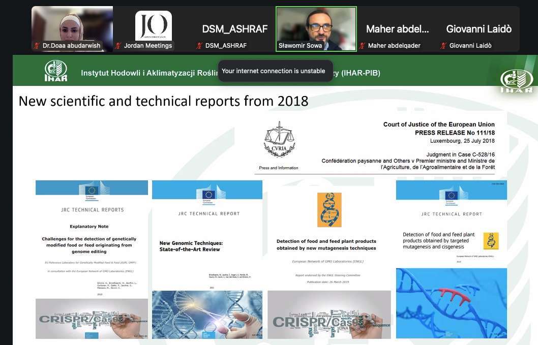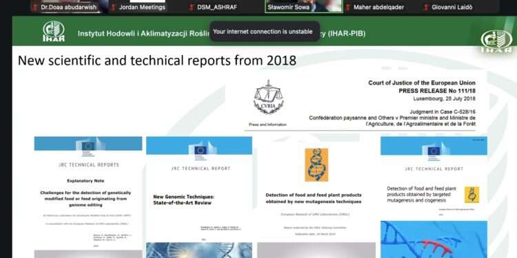 صدى الشعب- في إطار المتابعة الحثيثة من وزير الزراعة المهندس خالد الحنيفات في تعزيز التكنولوجيا الحيوية الزراعية ، نظم المركز الوطني للبحوث الزراعية دورة تدريبية دولية افتراضية حول ” النباتات المعدلة وراثيا وتقنيات زراعة الأنسجة النباتية”