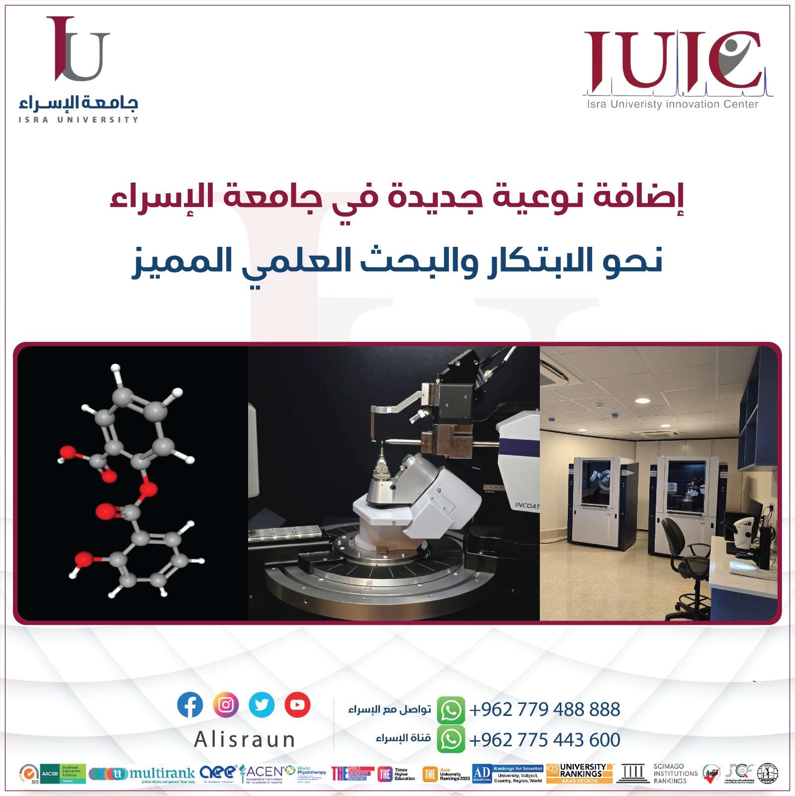 تأتي هذه الاضافة في إطار رؤية جامعة الإسراء التي تهدف إلى توفير بيئة بحثية متطورة تدعم الابتكار والإبداع، حيث تعمل الجامعة على تزويد مركز الريادة والابداع بأحدث الاجهزة والتقنيات التي تُسهم في تمكين الباحثين والطلبة من تحقيق إنجازات علمية نوعية على المستويين المحلي والدولي من خلال إجراء أبحاث علمية ذات جودة عالية، تضعها في مصاف الجامعات الرائدة، وتسهم في خدمة المجتمع الأكاديمي والصناعي على حد سواء.