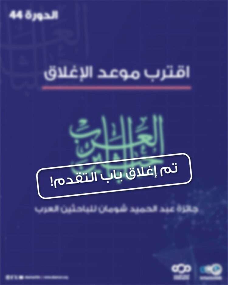 صدى الشعب- أعلنت مؤسسة عبد الحميد شومان ذراع البنك العربي للمسؤولية الثقافية والاجتماعية، عن اغلاق باب التقدم لجائزة الباحثين العرب في دورتها الـ(44) للعام 2026.