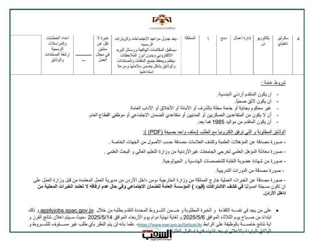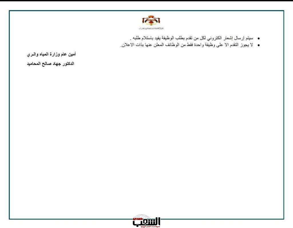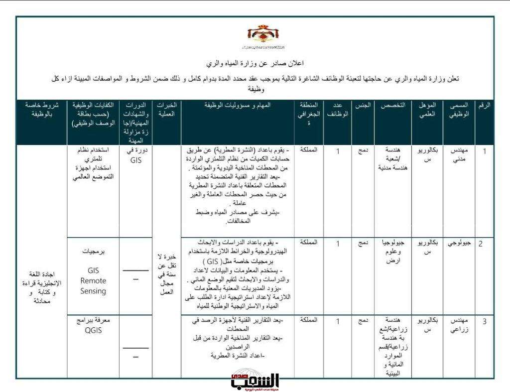 صدى الشعب- أعلنت وزارة المياه الري عن توفر شواغر وتالياً الشروط بحسب ما نشرته: