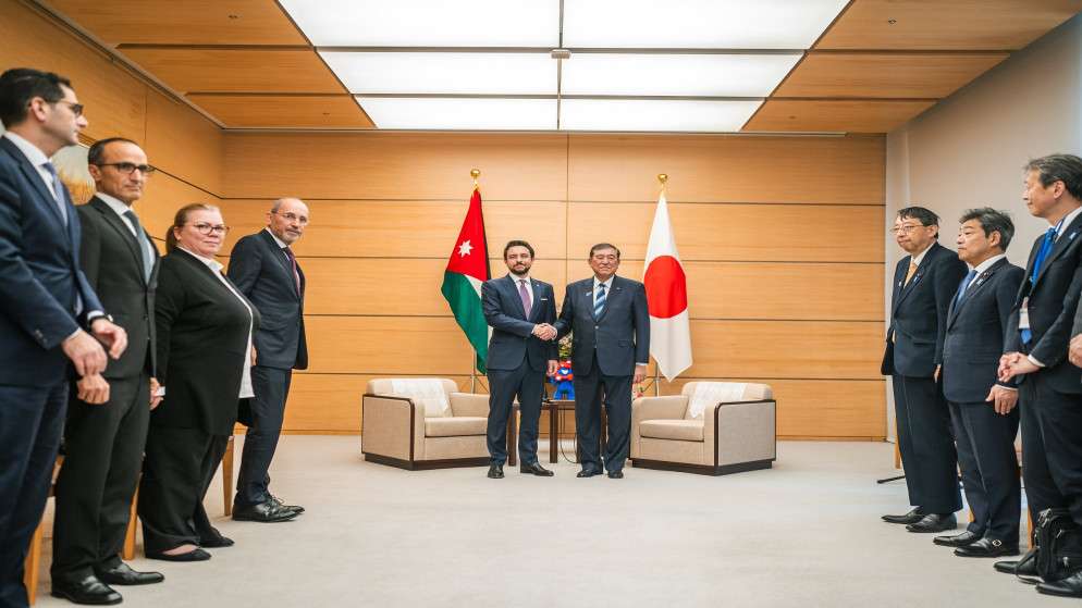 ونقل سموه تحيات جلالة الملك عبدالله الثاني إلى رئيس الوزراء الياباني، مؤكدا اعتزازه بالعلاقة الراسخة بين البلدين، والتوافق بينهما بشأن ضرورة تحقيق السلام والازدهار في المنطقة والعالم.