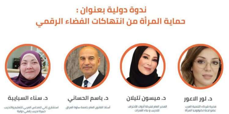 صدى الشعب – المفرق – نظّمت شركة أدوات الاحتراف للتدريب وبناء القدرات، بالتعاون مع جمعية كنوز الخير الخيرية ورابطة الأدباء والمثقفين العرب – الذراع الثقافي للشركة – وبالشراكة مع مركز رياديات الأعمال التابع للهيئة العالمية الأمريكية للاختراع والتنمية والاستثمار، ندوة دولية متخصصة حملت عنوان «حماية المرأة من انتهاكات الفضاء الرقمي»، وذلك في إطار فعاليات الحملة العالمية 16 يوم لمناهضة العنف ضد المرأة، وبمشاركة خبراء من العراق ولبنان والأردن.