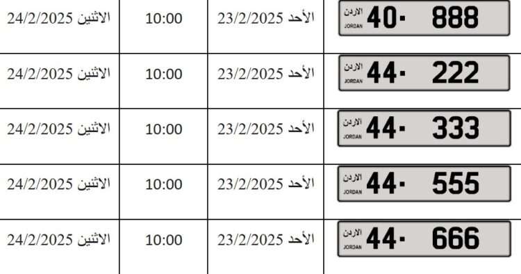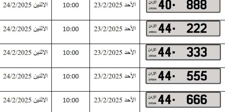 صدى الشعب – أعلنت إدارة ترخيص المركبات عن طرح مجموعة من الارقام المميزة (الثلاثية، الرباعية، الخماسية) في المزاد العلني الالكتروني اعتبارا من الأحد القادم 23/2/2025.