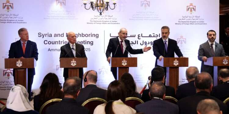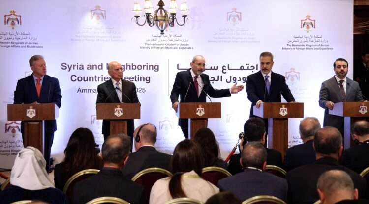 بدعوة من المملكة الأردنية الهاشمية، اجتمع اليوم، ٩ آذار ٢٠٢٥، في العاصمة الأردنية عمّان، وزراء الخارجية، ووزراء الدفاع، ورؤساء هيئات الأركان، ومديرو أجهزة المخابرات في المملكة الأردنية الهاشمية، والجمهورية التركية، والجمهورية العربية السورية، وجمهورية العراق، والجمهورية اللبنانية.