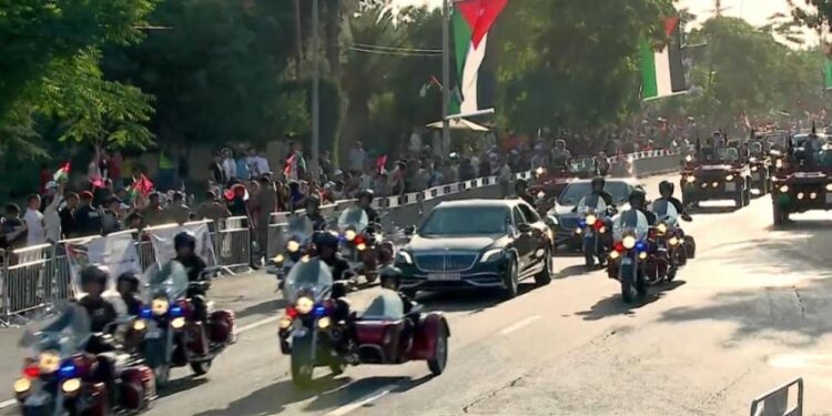 وكان جلالته قد وصل موقع الحفل مستقلا الموكب الأحمر الذي اخترق شارع الملك عبدالله “المدينة الطبية”.