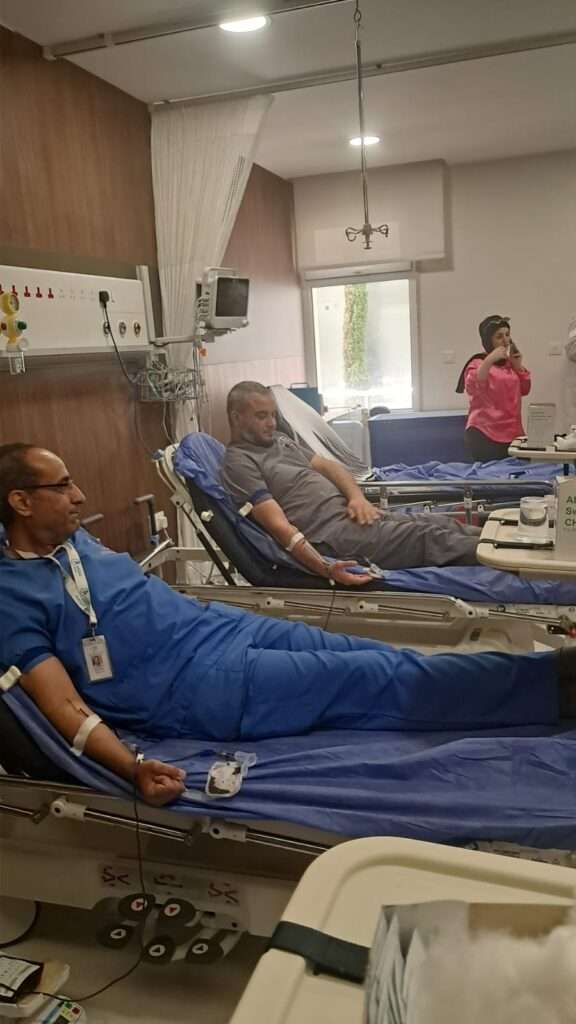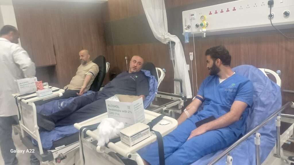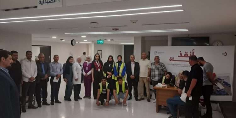 صدى الشععب – نظم مستشفى الرشيد اليوم، بالتعاون مع بنك الدم الوطني، حملة للتبرع بالدم لدعم أهلنا في قطاع غ*زة. حيث أن هذه الحمله تنسجم مع التوجيهات الملكيه السامية بدعم الأهل والاشقاء في كل مكان