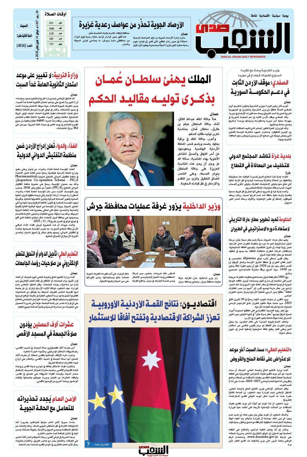 عــدد السبـــت رقم 4024 ، الموافق 10-1-2026