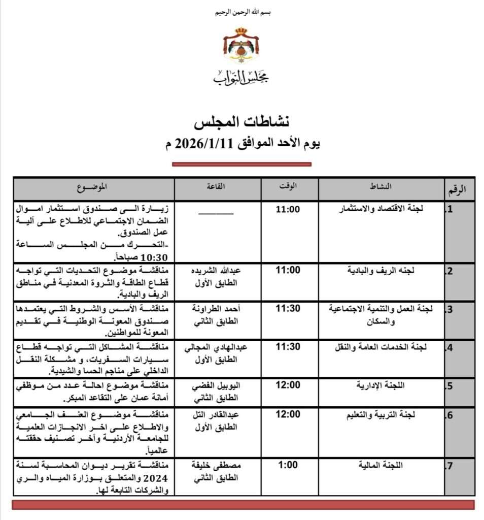 و تالياً جدول نشاطات اللجان غداً الأحد