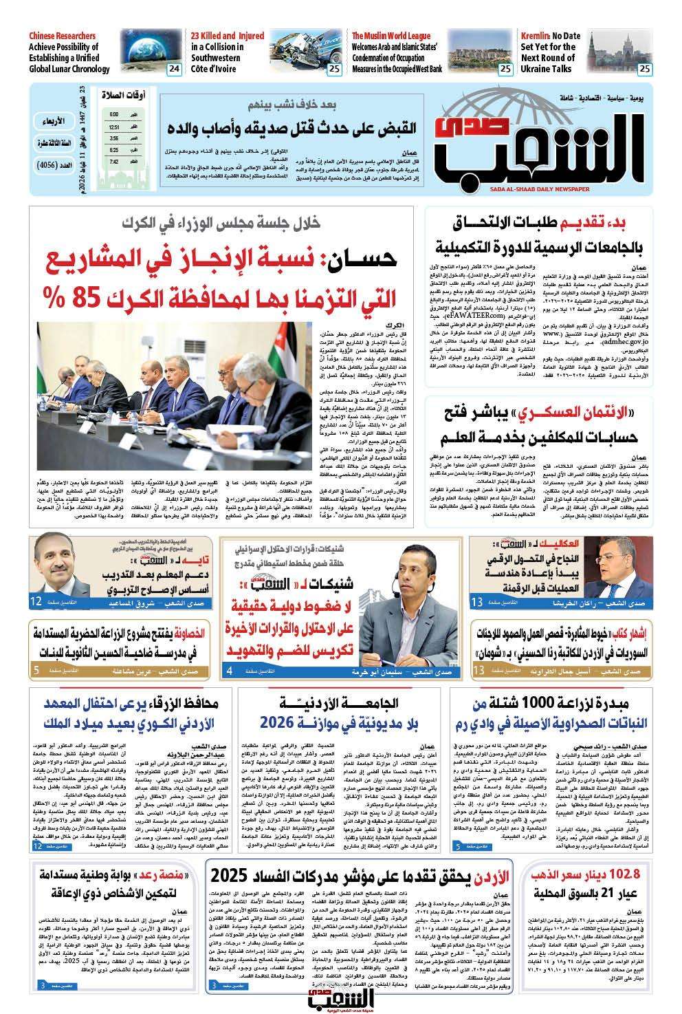 عــدد الأربعـــاء رقم 4056 ، الموافق 11-2-2026
