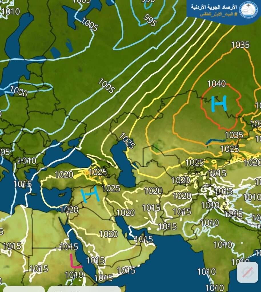 الأربعاء: يطرأ ارتفاع طفيف على درجات الحرارة، ويكون الطقس لطيفاً فوق المرتفعات الجبلية العالية ودافئاً في باقي المناطق، مع رياح جنوبية شرقية معتدلة السرعة تنشط أحياناً. خلال الليل، يبقى الطقس بارداً نسبياً في أغلب المناطق، ولطيفاً في الأغوار والبحر الميت والعقبة.