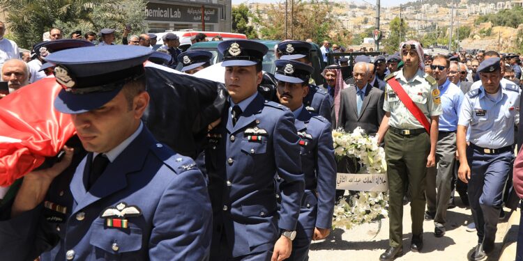 صدى الشعب – مندوبا عن جلالة الملك عبدالله الثاني، وسمو الأمير الحسين بن عبدالله الثاني، ولي العهد، شارك رئيس الديوان الملكي الهاشمي يوسف حسن العيسوي، اليوم الإثنين، في تشييع جثمان العين الأسبق، الفريق الركن الطيار المتقاعد احسان حميد شردم، قائد سلاح الجو الاسبق.