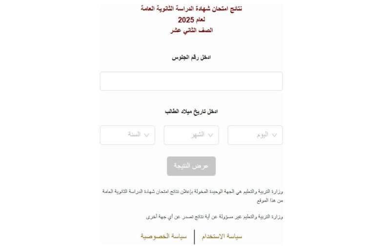 و عقدت الوزارة مؤتمراً صحفياً في تمام الساعة السادسة مساء، أعلنت فيه عن نسب النجاح في امتحان شهادة الدراسة الثانوية العامة التوجيهي للعام 2025 في الأردن و التي وصلت لـ62.5%، وأسماء الطلبة الأوائل، إذ يعقد المؤتمر في مسرح مركز الملكة رانيا العبدالله لتكنولوجيا التعليم والمعلومات/ الشميساني.