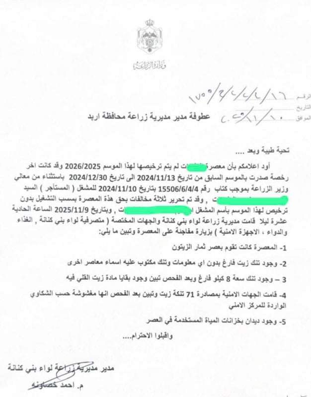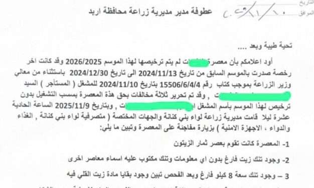 هذا الإجراء، بحسب مراقبين، يعكس جدية المؤسسات الرقابية في تتبع مخالفات قطاع الزيت والزيتون، خاصة مع اقتراب موسم العصر الذي يشهد عادة نشاطاً مكثفاً للغش والتلاعب بالمواصفات، في محاولة لاستغلال ثقة المستهلك الأردني بزيت الزيتون المحلي.