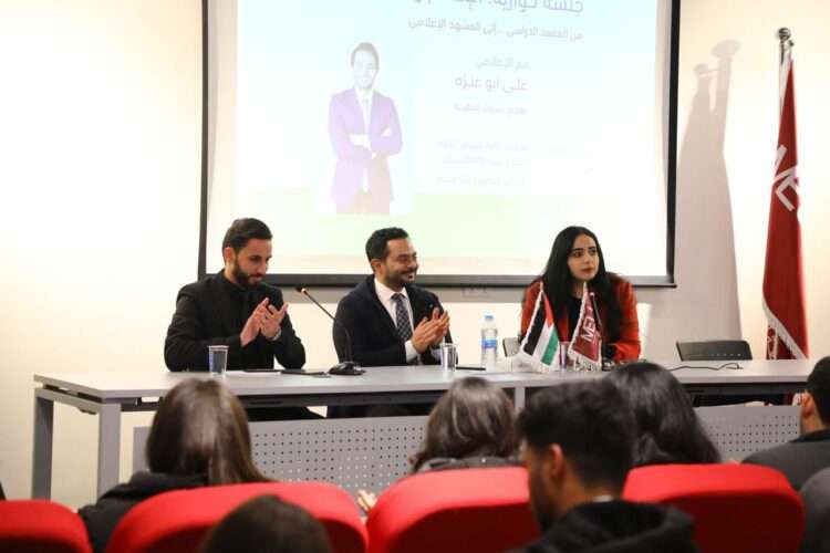 صدى الشعب – تحت رعاية عميد كلية الإعلام، الدكتور رامز أبو حصيرة، نظّم طلبة مساق “إدارة المؤتمرات والمناسبات” بإشراف مُدرسة المساق الدكتورة سبأ السكر، يوم الأربعاء، حوارية إعلامية متخصصة بعنوان “الإعلام وسوق العمل.. من المقعد الدراسي إلى المشهد الإعلامي”، بحضور الإعلامي علي أبو عنزة وعدد من أعضاء الهيئة التدريسية والطلبة في جامعة الشرق الأوسط.