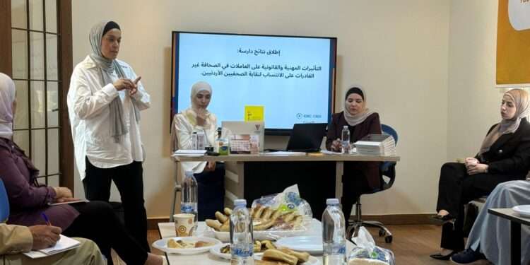 وقد أفادت الشبكة أنه في خضم التحولات السريعة التي يشهدها المشهد الإعلامي على المستويين الوطني والعالمي، أصبحت مهنة الصحافة ميدانًا مليئًا بالتحديات المعقدة، لا سيما بالنسبة للصحفيات غير المنتسبات إلى الأطر النقابية الرسمية. ففي الأردن، يمثل الانتساب إلى نقابة الصحفيين الأردنيين شرطًا قانونيًا أساسيًا للاعتراف بالممارسة المهنية للصحافة، وهو ما يشكل قيدًا إضافيًا أمام العديد من العاملات في الحقل الإعلامي، خاصة في ظل وجود اشتراطات تعيق انتسابهن.