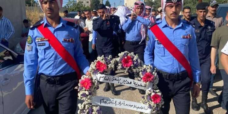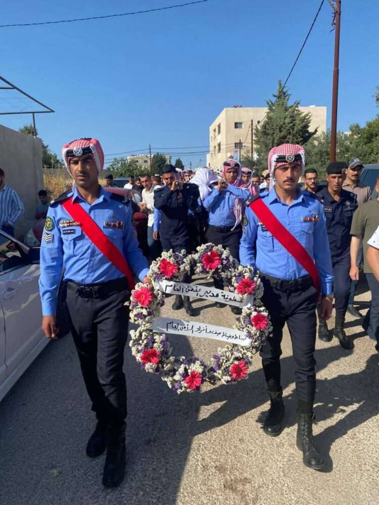 صدى الشعب – مندوباً عن مدير الأمن العام اللواء الدكتور عبيدالله المعايطة، شارك مدير شرطة محافظة عجلون العميد وصفي العزام ، بتشييع جثمان الشرطي عبادة سعيد خالد القضاة من مرتب مدينة الملك عبدالله الثاني ابن الحسين التدريبية من مسجد رأس منيف في محافظة عجلون إلى مقبرة البلدة .