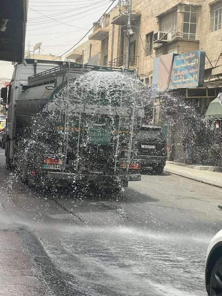 واصلت صهاريج المياه التابعة لبلدية الزرقاء رش المياه بطريقة الرذاذ على عدد من الشوارع الرئيسية في مختلف المناطق، وخاصة وسط المدينة التي تعد أكثر المواقع إرتفاعا في درجات الحرارة.