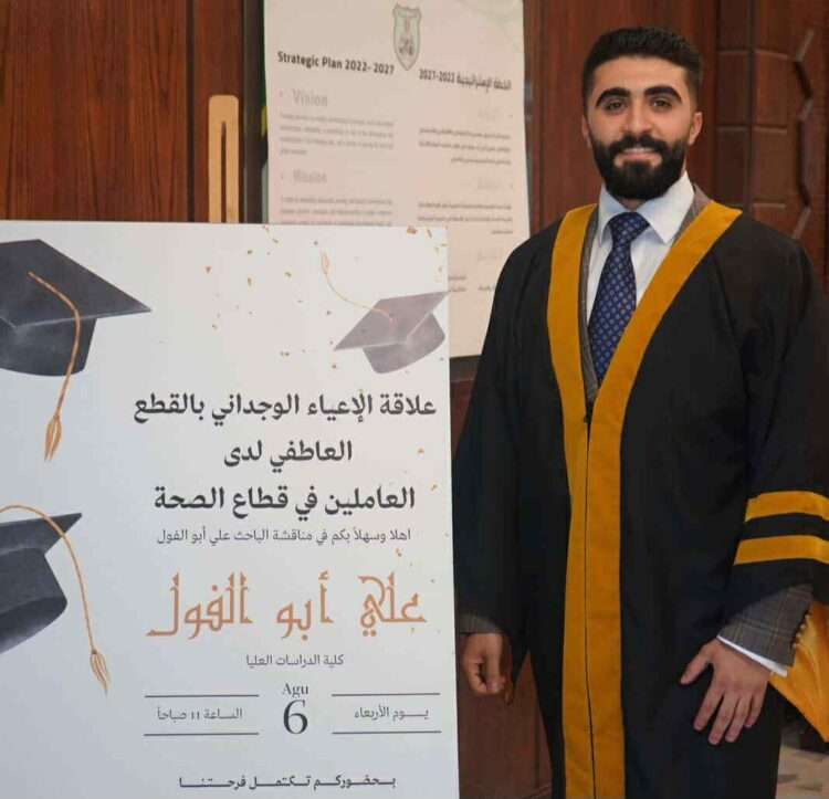 صدى الشعب – يتقدّم أبناء قبيلة بني حسن والغويري خاصة ( ابو الفول) بأسمى آيات التهنئة والتبريك إلى السيد علي محمد ابو الفول بمناسبة حصوله على درجة الماجستر بعلم النفس الاكلينيكي من الجامعة الاردنية بتقدير (امتياز)