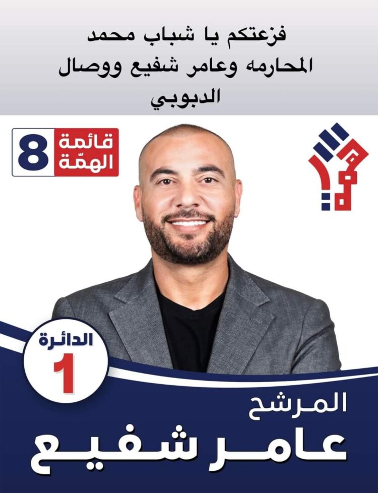 صدى الشعب - حصل حارس مرمى منتخبنا الوطني السابق ومدرب حراس المرمى في النادي الفيصلي (الحوت) عامر شفيع، المرشح للانتخابات النيابية 2024 على 2285 صوتا. حيث ترشح شفيع على قائمة الهمة في الدائرة الانتخابية في العاصمة عمّان.