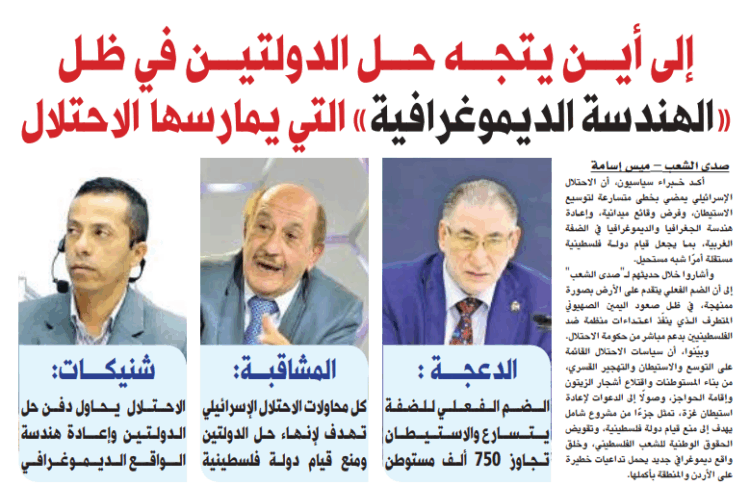 وأوضح أن ”الهندسة الجغرافية والديموغرافية” التي ينفذها الاحتلال، خصوصًا عبر التوسع الاستيطاني، يُجزّئ الأرض الفلسطينية ويخلق وقائع على الأرض تجعل إقامة دولة فلسطينية متواصلة جغرافيًا وقابلة للحياة أمرًا شبه مستحيل، لاسيما في المنطقة (ج).