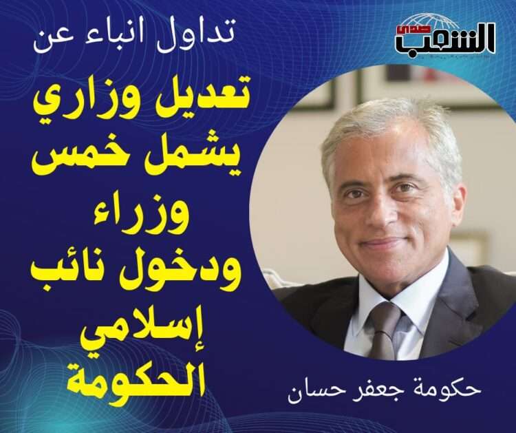 تتداول أوساط سياسية معلومات عن تعديل وزاري مرتقب على حكومة جعفر حسان، يُرجّح أن يشمل خروج خمسة وزراء من التشكيلة الحكومية، إلى جانب دخول نائب محسوب على التيار الإسلامي إلى الفريق الوزاري.