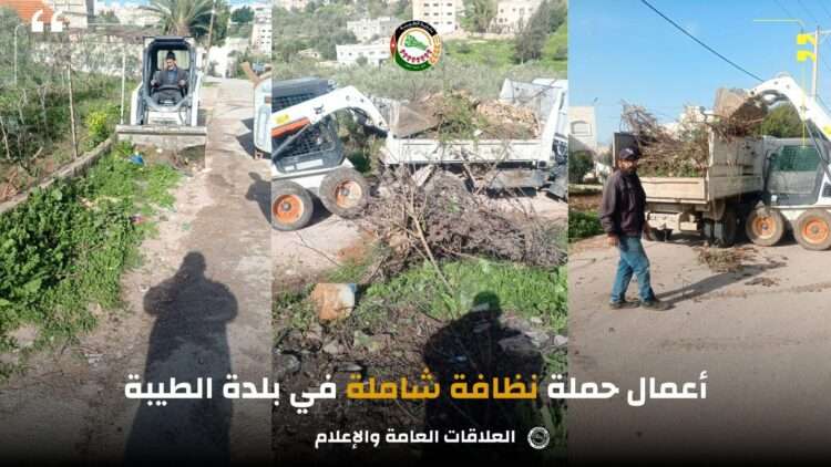 صدى الشعب- نفذت كوادر بلدية الطيبة الأربعاء، حملة نظافة شملت عددا من المواقع والأحياء الداخلية في بلدة الطيبة، استهدفت رفع الأنقاض ومخلفات أغصان الأشجار الجافة، وغيرها من النفايات المتراكمة.