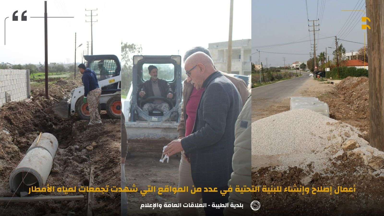 صدى الشعب- بلدية الطيبة تنفذ أعمال وإصلاح للبنية التحتية للعبارات ومجاري تصريف مياه الأمطار في عدد من المواقع التي شهدت هطولات وتجمعات مائية.
