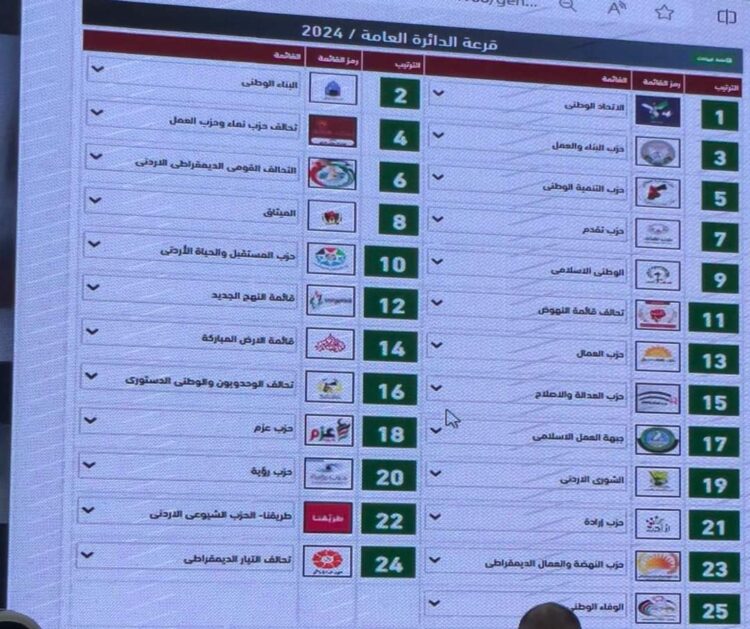 وجاءت قائمة “طريقنا – الحزب الشيوعي الأردني” في المرتبة 22، تلتها قائمة النهضة والعمال الديمقراطي، ثم تحالف التيار الديمقراطي في المرتبة 24، وقائمة الوفاء الوطني في المرتبة 25.