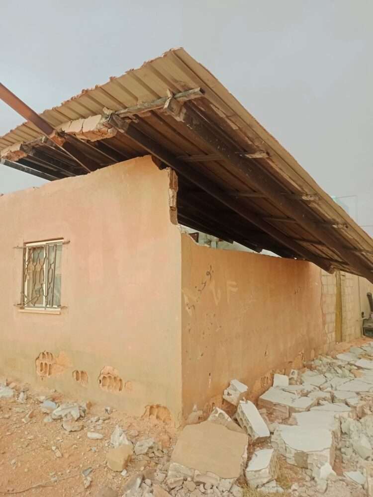 أدت الرياح الشديدة في لواء الرويشد مساء اليوم إلى سقوط أجزاء من منزل مسقوف بالزينكو على ذويه مع وقوع إصابات بسيطة.