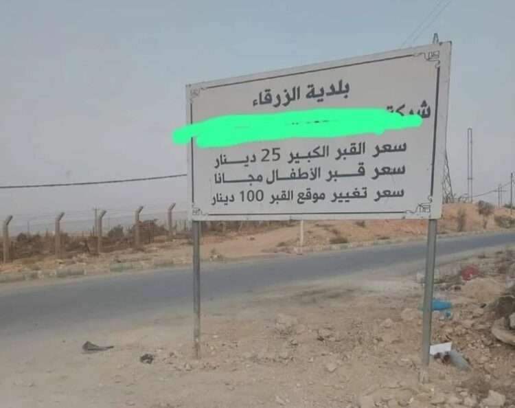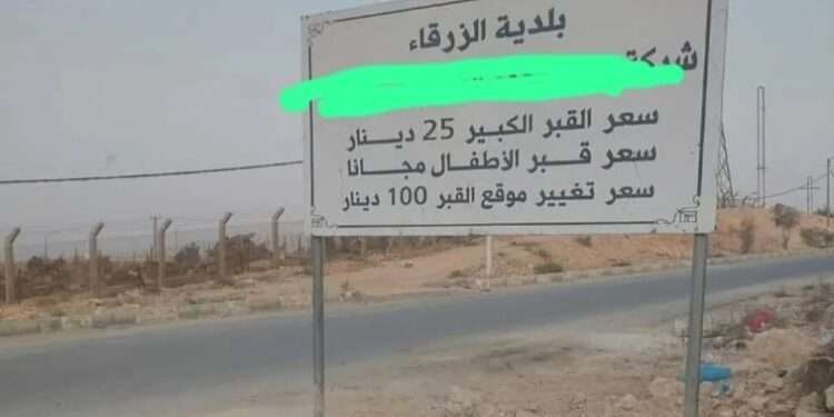 صدى الشعب – أثارت التسعيرة الجديدة لنقل القبور في مقبرة الهاشمية بمحافظة الزرقاء، استياء واسعا بين المواطنين، بعد اعتماد مبلغ 100 دينار لنقل القبر من المنطقة غير المجهزة بالخدمات إلى المنطقة الجديدة بالمقبرة.