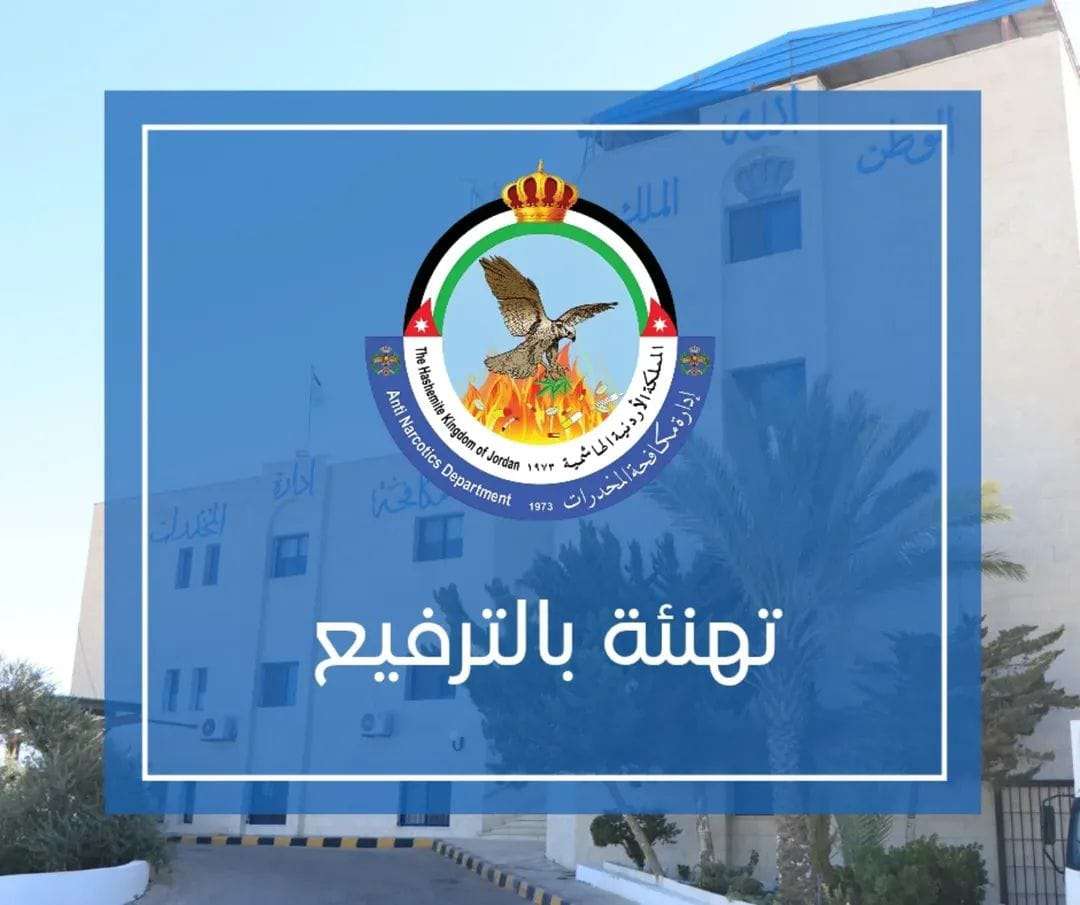 صدى الشعب – يتقدم العميد حسان حسين القضاة مدير إدارة مكافحة المخدرات ونائبه العقيد رعد طبطح، وكافة ضباط وضباط صف إدارة مكافحة المخدرات بالتهنئة والتبريك من زملائهم السادة الضباط الذين صدرت بحقهم الإرادة الملكية السامية بترفيعهم الى الرتب التي تلي رتبهم الحالية.