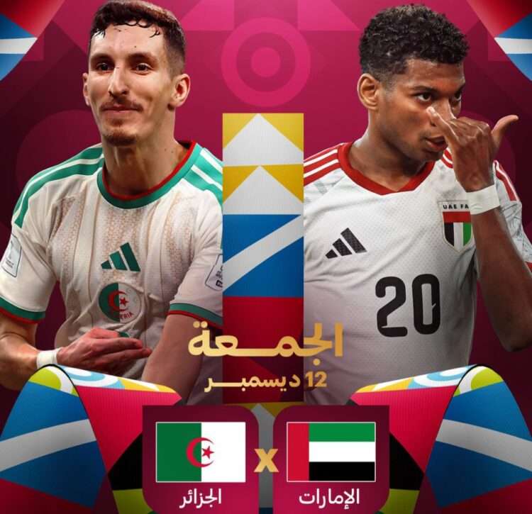 صدى الشعب – يتطلع المنتخب الجزائري (محاربي الصحراء) لمواصلة حملة الدفاع عن لقبه عندما يواجه نظيره (الأبيض الإماراتي) في ربع نهائي كأس العرب 2025، الجمعة، الساعة 8:30 مساءً بتوقيت الأردن، على ملعب البيت.
