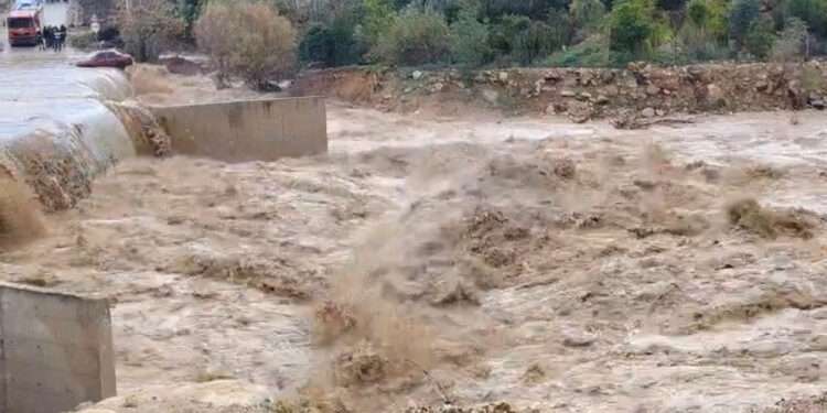 فيضان (سدّ البويضة) بإربد البالغة سعته 700 ألف م3