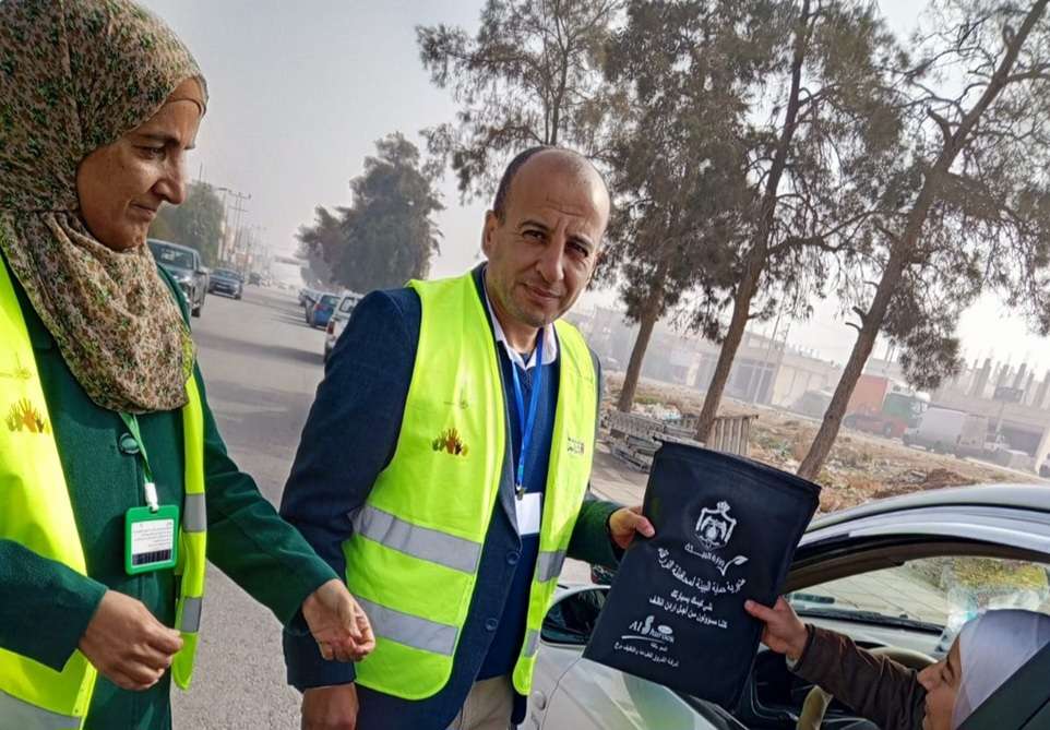 بيئة الزرقاء تنفذ مبادرة توزيع أكياس النفايات على المركبات بلواء الهاشمية