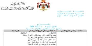صدى الشعب – محرر الشؤون البرلمانية يعقد مجلس النواب جلسته التشريعية الثالثة و العشرين في الدورة العادية الثانية التي تنتهي في 26-4-2026 عند الساعة 11 ظهراً اليوم الإثنين. و يشير جدول الأعمال ان الجلسة ستناقش قرار الجنة القانونية رقم ( 5 ) تاريــخ 1/4/2026 والمتضمن مشروع قانون معدل لقانون الأحوال المدنية لسنة 2026 و الذي طال … تابع قراءة هل سينجح النواب في تخفيض غرامات (بدل فاقد) وثائق الأحوال المدنية من (30 لـ15 دينار و من 100 لـ25)؟