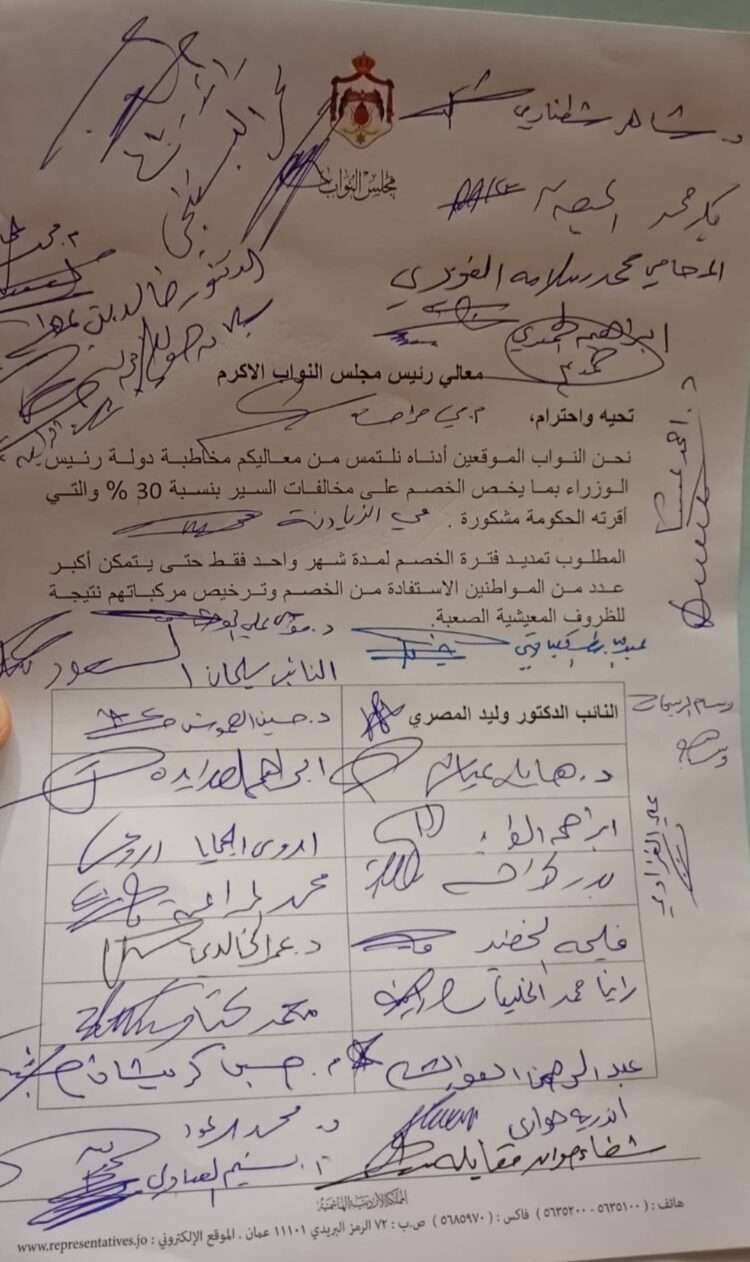 و تبنى النائب وليد المصري المذكرة، بطلب تمديد فترة الخصم لمدة شهر واحد فقط، مُعللاً أن هذا القرار سيُمكن أكبر عدد من المواطنين الاستفادة من الخصم و ترخيص مركباتهم عطفاً على الظروف المعيشية الصعبة.