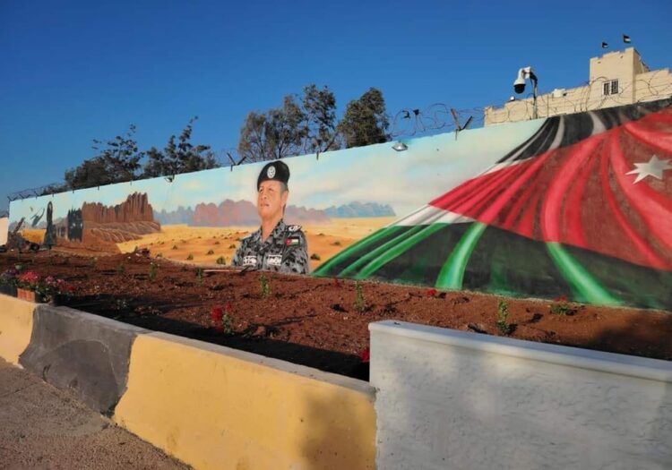 أوضح مدير مديرية ثقافة الزرقاء، الأستاذ محمد الزعبي أن مديريه ثقافة الزرقاء، وابتهاجاً بزيارة جلالة الملك، نفذت جدارية بالتعاون مع جمعيه الفن التشكيلي، في مهبط الطائرة، تتضمن صورة لجلالة الملك، وعلم المملكة، راية الوطن، وجبال رم، وعربات ومعدات عسكرية، كونها مدينة الجند والعسكر، وذلك ضمن استعدادات المحافظة لاستقبال سيد البلاد، جلالة الملك عبدالله الثاني ابن الحسين لمدينة الزرقاء.
