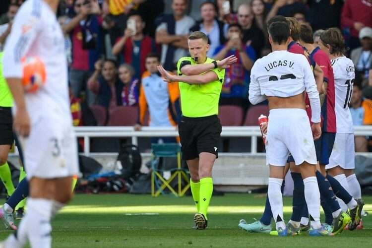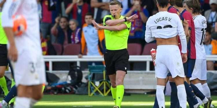 صدى الشعب – أثار مقطع صوتي بين حكم الساحة وغرفة تقنية الفيديو جدلاً واسعاً خلال مباراة «الكلاسيكو المجنون» بين برشلونة وريال مدريد، التي انتهت بفوز الفريق الكاتالوني صاحب الأرض 4-3، الأحد، واقترابه من حسم لقب الدوري الإسباني بعدما وسع الفارق إلى 7 نقاط قبل 3 جولات على ختام البطولة.