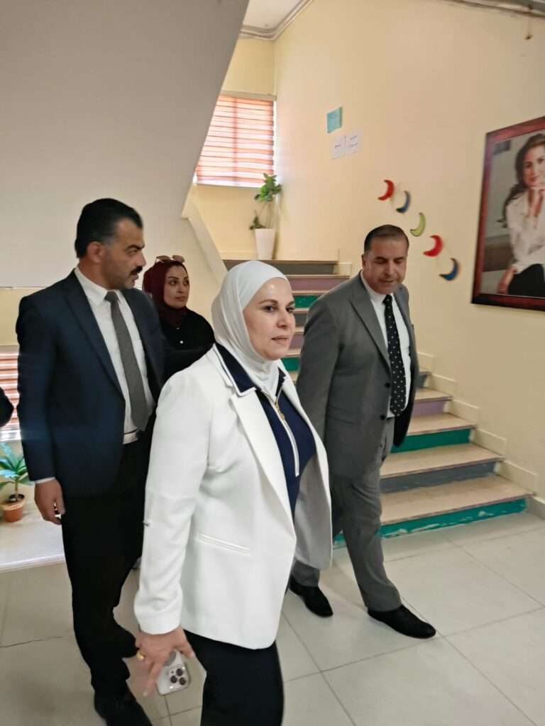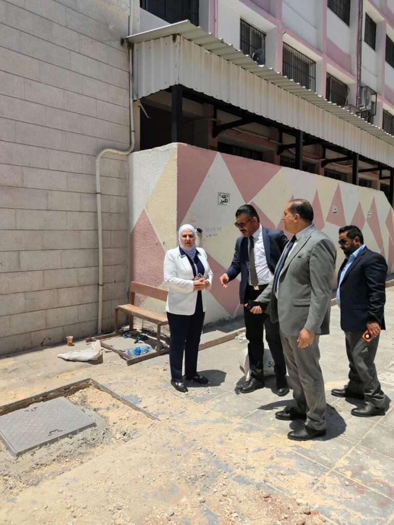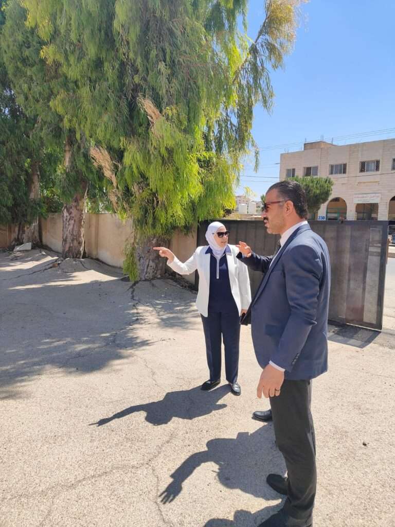 ورافقها خلال الجولة التفقدية كذلك مدير مديرية الاملاك والاستثمار في إدارة الأبنية والمشاريع الدولية خلف الحباشنة/ ورئيس قسم الأبنية في مديرية التربية والتعليم للواء الجامعة المهندس سفيان أبو صافي.