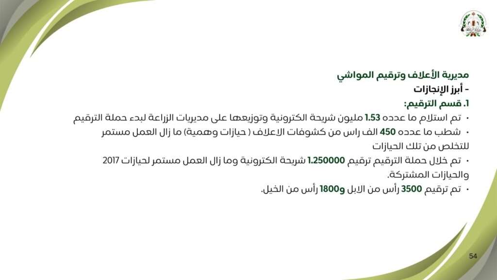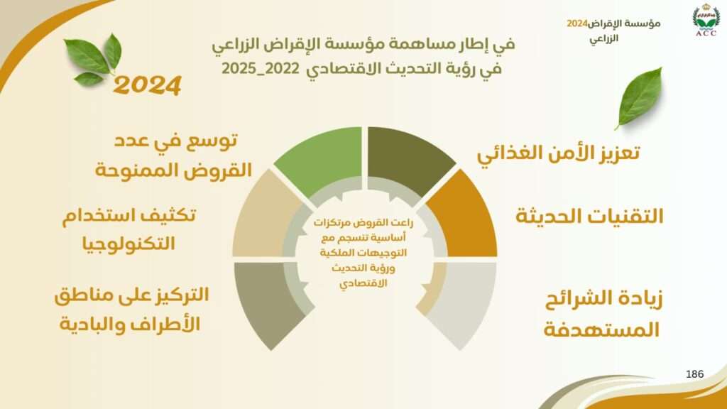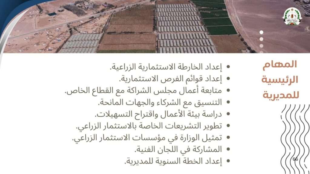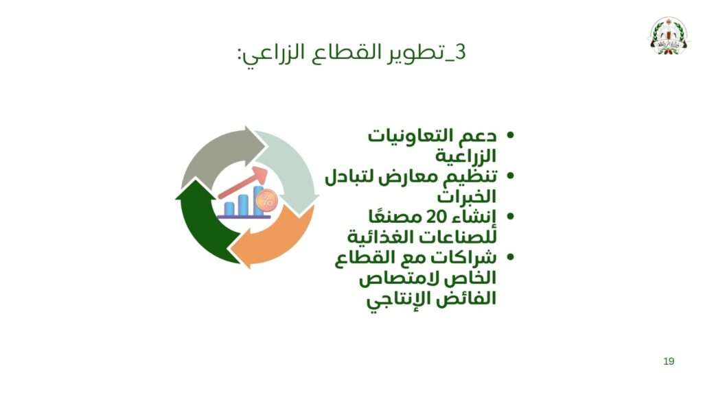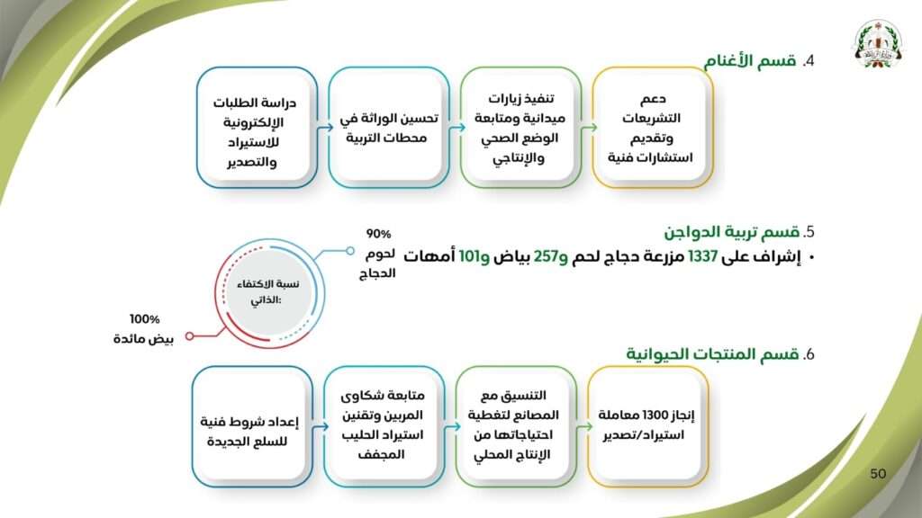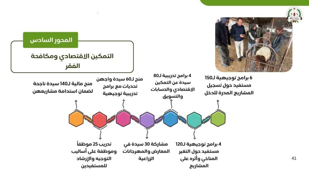 وقامت بتسليط الضوء على ما تحقق في قطاع الثروة النباتية، بما في ذلك البرامج التطويرية التي أسهمت في رفع كفاءة الإنتاج الزراعي، وتحسين جودة المحاصيل، وتعزيز الاكتفاء الذاتي من السلع الأساسية.