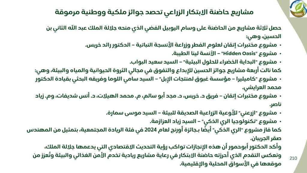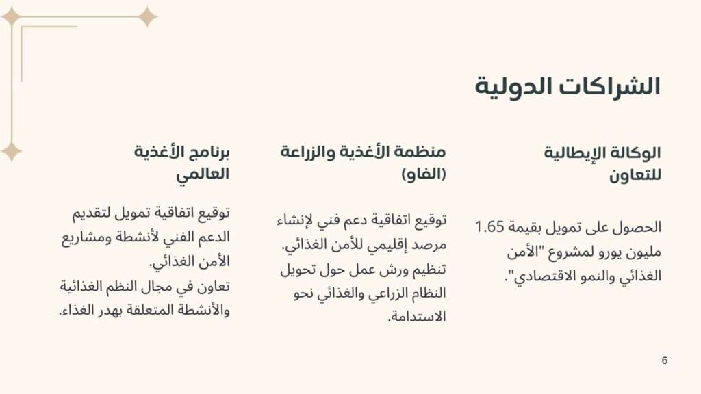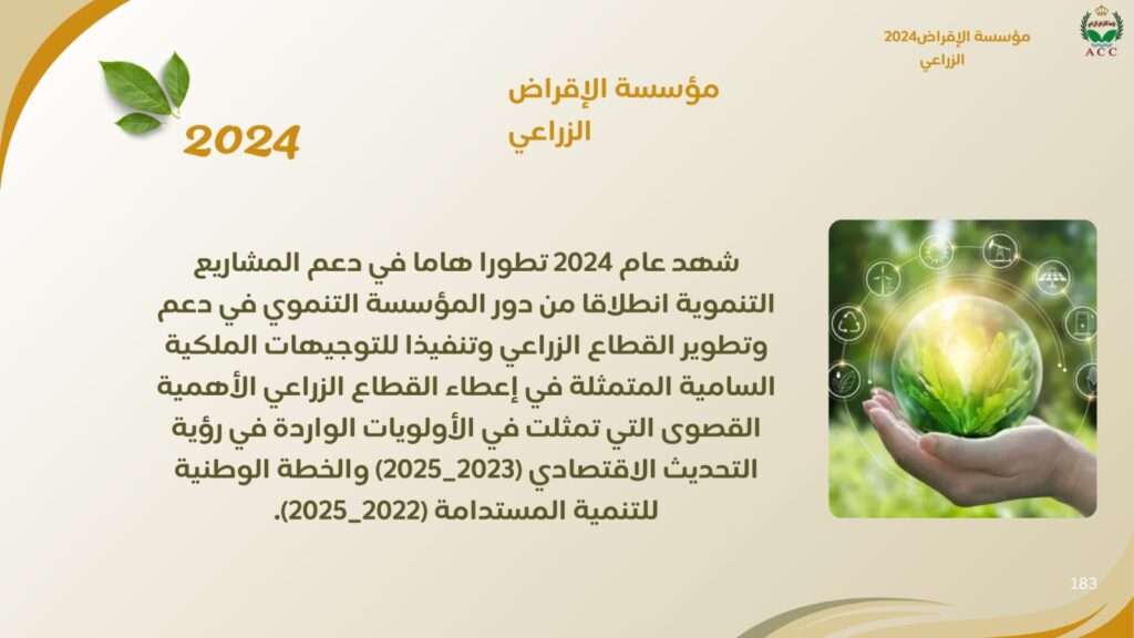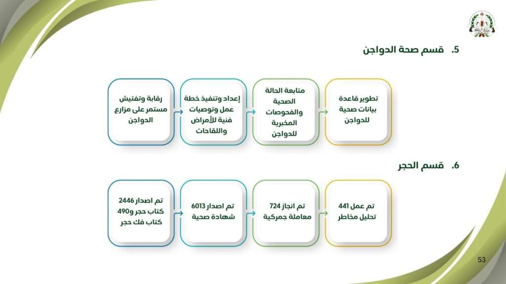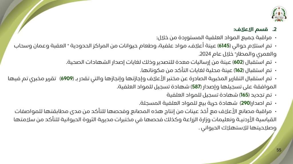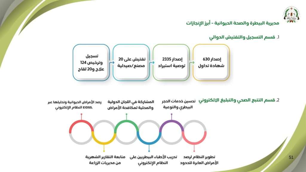 وقامت بتسليط الضوء على ما تحقق في قطاع الثروة النباتية، بما في ذلك البرامج التطويرية التي أسهمت في رفع كفاءة الإنتاج الزراعي، وتحسين جودة المحاصيل، وتعزيز الاكتفاء الذاتي من السلع الأساسية.