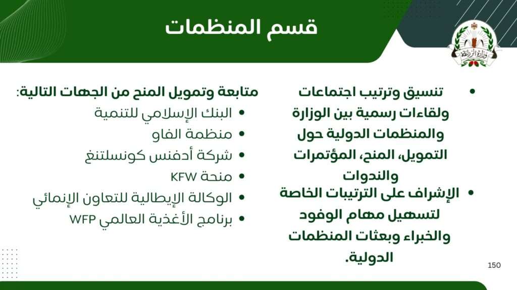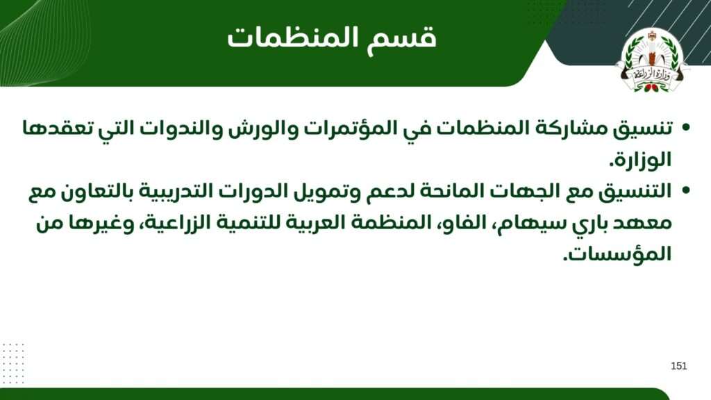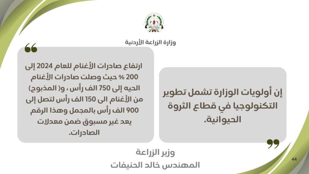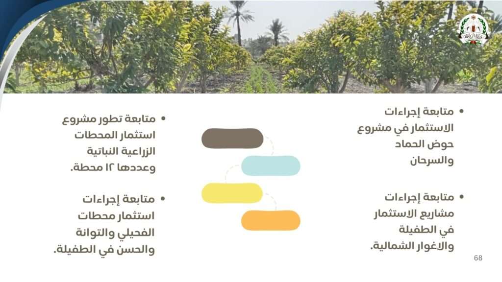 وأكدت وزارة الزراعة استمرارها في تنفيذ خططها الاستراتيجية وفقًا لأعلى المعايير، وبما ينسجم مع التوجهات الوطنية لتحقيق الأمن الغذائي وتحفيز الاستثمارات الزراعية المستدامة.