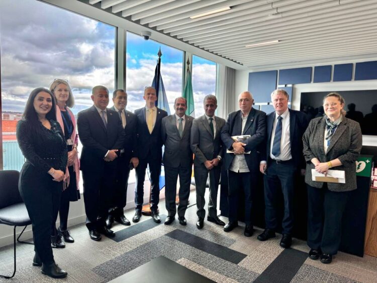 واستقبل الوفد السيد باتريك ماتيوس مدير قسم التعاون الإنمائي للشرق الأوسط وأفريقيا في وزارة الخارجية الأيرلندية حيث تم عرض أبرز التحديات التي تواجه الاقتصاد الأردني خاصة في ظل الظروف الإقليمية المحيطة، وأكد الكايد ان العلاقات بين البلدين تاريخية وان الدعم الاقتصادي الأيرلندي للاردن في هذه المرحلة يجب ان يتكثف خاصة في ظلّ الرؤية الاقتصادية وبرامج التطوير التي وضعتها الحكومة الأردنية مؤخراً.