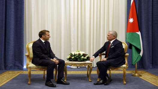كما أكد جلالة الملك خلال لقاء جمعه بالرئيس الفرنسي توافق وجهات النظر بين الأردن وفرنسا حيال ضرورة تحقيق السلام العادل والشامل على أساس حل الدولتين.