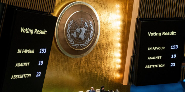 اعتمدت الجمعية العامة للأمم المتحدة، الثلاثاء، مشروع قرار يطالب بوقف فوري للحرب الإسرائيلية على قطاع غزة لأسباب إنسانية، بعد أن أيد أكثر من ثلاثة أرباع أعضاء الجمعية العامة 153 دولة، ومعارضة 10 دول، فيما امتنعت 23 دولة عن التصويت.