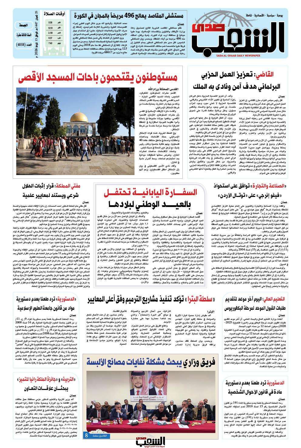 عــدد الجمعـــة رقم 4058 ، الموافق 13-2-2026