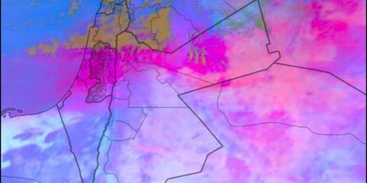 الأقمار الصناعيّة تَـرصُد هذه اللحظات استمرار تواجد كُتلة كبيرة من الغُبار في أجواء الأردن وفلسطين وبتركيزات عالية في معظم المناطق، وهي غير اعتياديّة في مثل هذا الوقت من العام، وعادةً ما نتأثّـر بهكذا موجات غُباريّة خلال شهري آذار ونيسان.
